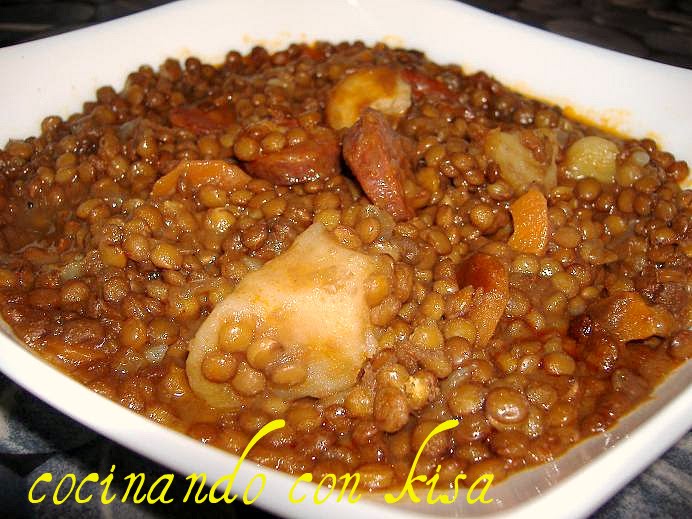 Lentejas Con Tocino : Pon A Remojo, El Arroz De Víspera Y Las Lentejas Con Una Hora De Antelación.
