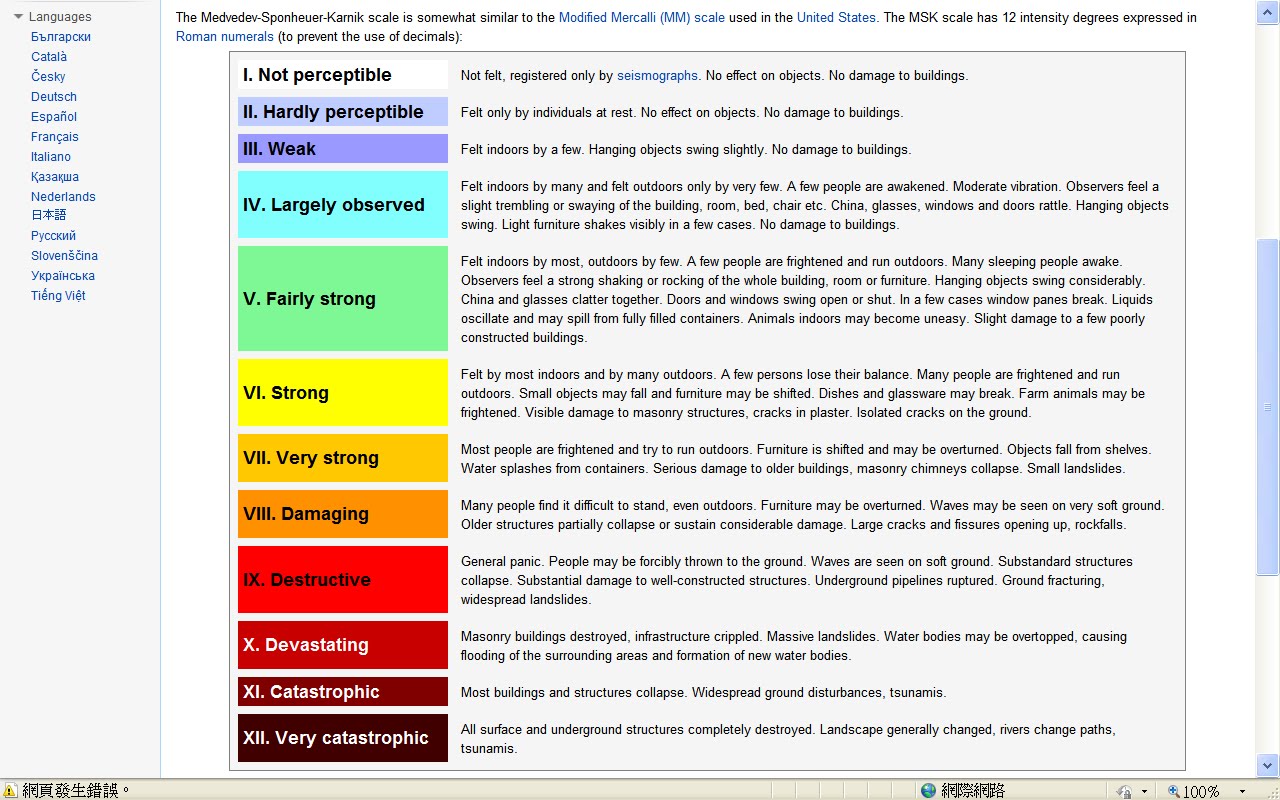 Medvedev-Sponheuer-Karnik Scale Effects - The Msk Scale Has 12 Intensity Degrees Expressed In Roman Numerals (To Prevent The Use Of Decimals):